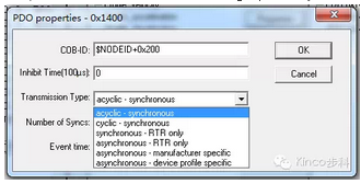 上图,这就是PDO的配置过程,0x1402(接收PDO通讯参数),PDO使用的cob-id,传输类型,Inhibit time,EventTimer。