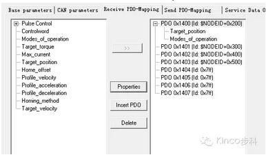 主控制器写target position,mode of operation给伺服,此PDO的cob-id为0x200 node id。传输方式为255或者254,禁止时间为100,也就是10ms。