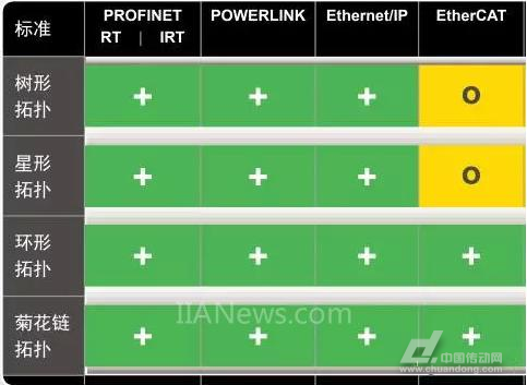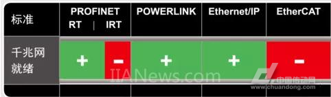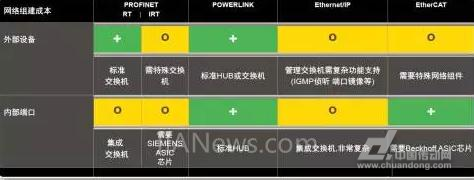由于Ethernet/IP和POWERLINK是专门的基于软件的技术,这些协议可以被千兆以太网硬件所采用,与此相反,EtherCAT需要ASIC,PROFINETIRT也需要一些重新设计的硬件—包括特殊的交换机,FPGA方案也可以被用于千兆以太网。