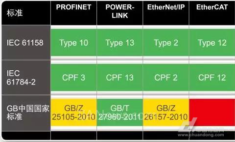 IEC61158国际标准化协议(称为“类型”)用于工业控制方法。IEC61784-2标准化通信规范族(称为“CPF”)。GB标准是中国国家标准由国家标准化管理委员会编制并发布。GB/Z是国家指导性文件。这代表作为信息参考而不作为强加的。通信技术的最高级为GB/T—国家推荐性标准,它必须满足:完全开放的技术、全球广泛使用的技术、不受制于任何国家和公司。